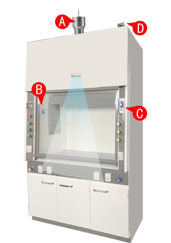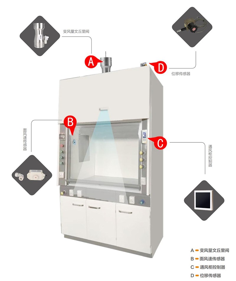 變風(fēng)量控制系統(tǒng):變風(fēng)量控制是通過實(shí)驗(yàn)室內(nèi)通風(fēng)柜窗門開度的變化調(diào)節(jié)系統(tǒng)的送、排風(fēng)量,從而保障無論調(diào)節(jié)窗開度如何,始終可以精確控制通風(fēng)柜面風(fēng)速為0.3-05m/s