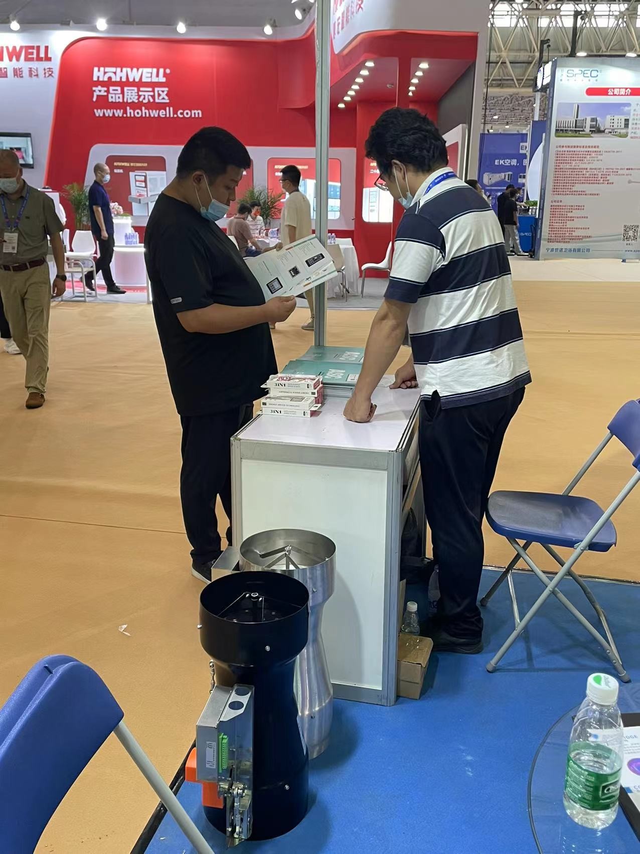 期間艾斯珂智能科技(深圳)有限公司張?chǎng)危ㄤN售經(jīng)理)與葉華豐(技術(shù)總監(jiān)),不斷為客人講解產(chǎn)品原理以及使用優(yōu)點(diǎn)