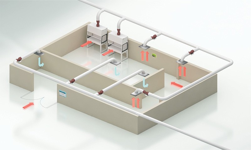 智控達(dá)房間壓差控制系統(tǒng)工作原理:房間壓差控制箱系統(tǒng)由房間壓差傳感器和房間壓差控制器組成,一般用于實驗室新風(fēng)系統(tǒng)及排風(fēng)系統(tǒng)的聯(lián)動控制,通過房間壓差控制器設(shè)定的壓力值,在獲知排風(fēng)系統(tǒng)的壓差變化時控制新風(fēng)系統(tǒng)的啟停,讓室內(nèi)保持恒定的正壓或者負(fù)壓值。